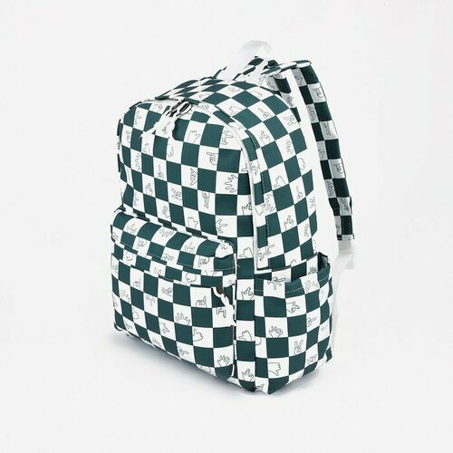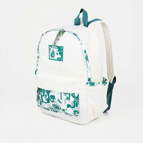 Рюкзак на молнии, 4 наружных кармана, цвет белый/зелёный