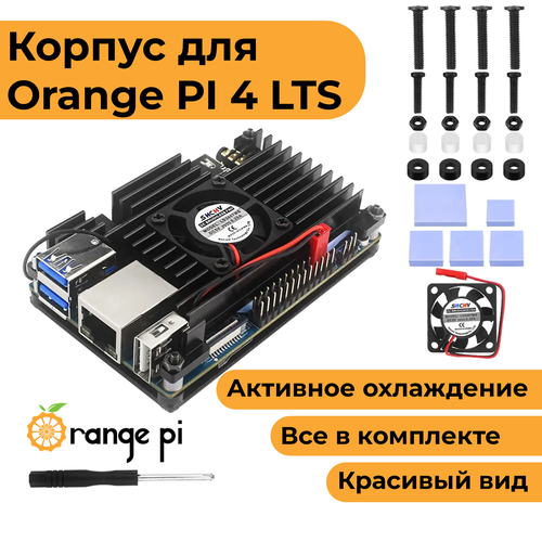 Металлический корпус для Orange Pi 4 с вентилятором (чехол-радиатор-кейс)