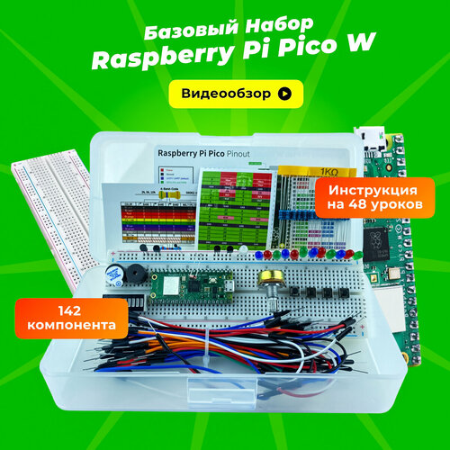 Базовый набор-комплект Raspberry Pi Pico W (начальный, обучающий, 142 детали, 48 уроков для моделирования)