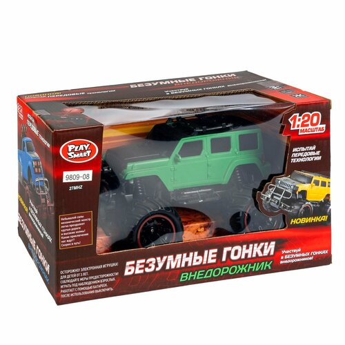 Noname Упр. радио маш. джип внедорожник FullFunc аккум./адапт, Play Smart"Безумные гонки", М1:20, BOX 29,8х16,6х15,9см, зелёный, арт.9809-08. М115794