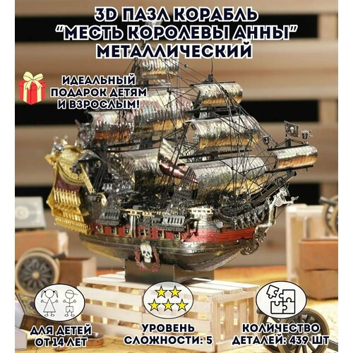 3D пазл металлический корабль "Месть королевы Анны" Luxury Gift, сборная модель корабля