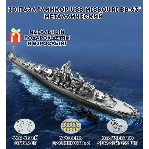 3D пазл металлический "Линкор USS Missouri BB-63" Luxury Gift, сборная модель корабля