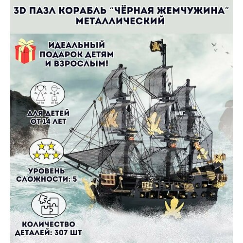 3D пазл металлический корабль "Чёрная жемчужина" Luxury Gift, сборная модель корабля