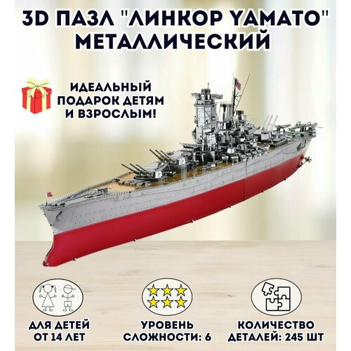 3D пазл металлический "Линкор Yamato" Luxury Gift, сборная модель корабля