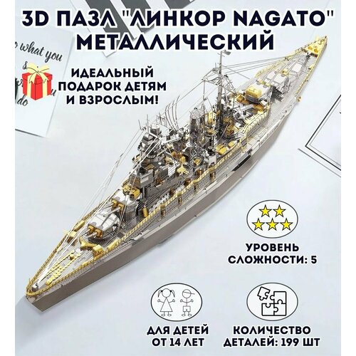 3D пазл металлический "Линкор Nagato" Luxury Gift, сборная модель корабля