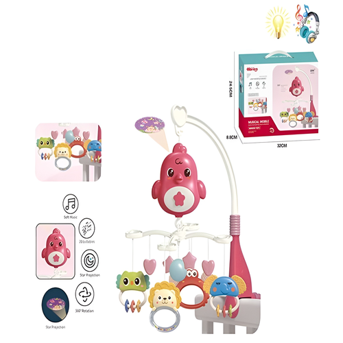 Карусель музыкальная на кровать Птичка розовая с проектором