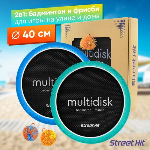 Набор для спортивной игры Мультидиск Mini (2в1 Бадминтон и Фрисби) от Street Hit включает в себя два стандартных диска и два станда...