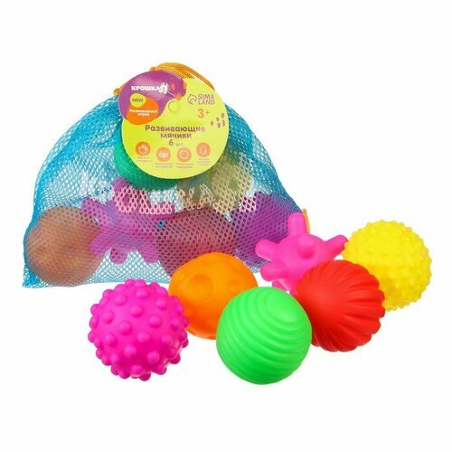 Набор развивающих тактильных мячиков «В мешочке», с пищалкой, 6 шт, Крошка Я (комплект из 5 шт)