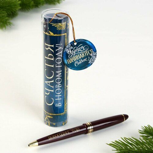 Ручка в тубусе "Счастья в Новом году!", пластик