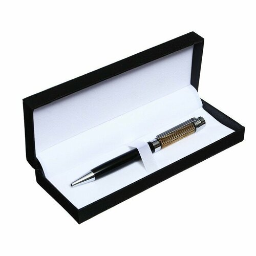 Ручка подарочная шариковая в кожзам футляре поворотная VIP корпус черный с серебр вставками