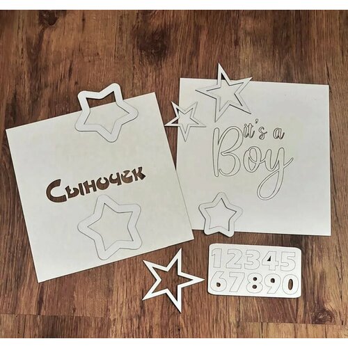 Набор Чипборд для тиснения Замши - Сыночек и звезды, толщина 1,5 мм, 9 шт. + Подарок