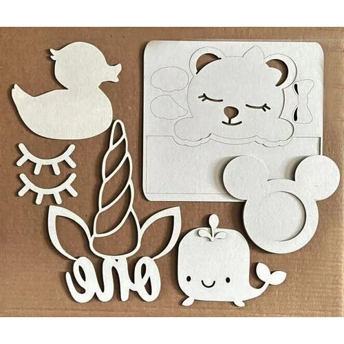 Набор Чипборд для тиснения Замши - Детский, толщина 1,5 мм, 6 шт. + Подарок