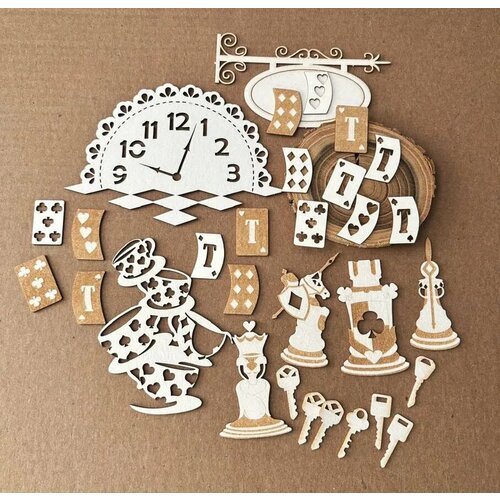 Набор Чипборд Алиса в стране чудес, толщина 1,5 мм, гравировка, 30 предметов + подарок