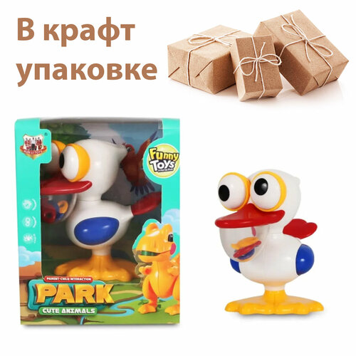 Пеликан трещотка крутилка с подвижными частями в подарочной крафт упаковке