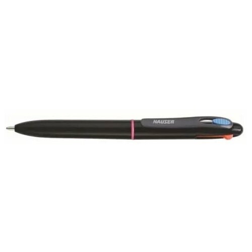 Набор шариковых ручек HAUSER 4-в-1 Trendz 12 шт, корпус черный, толщина стержня 0,7 мм, цвет чернил голубой, фиолетовый, розовый, оранжевый