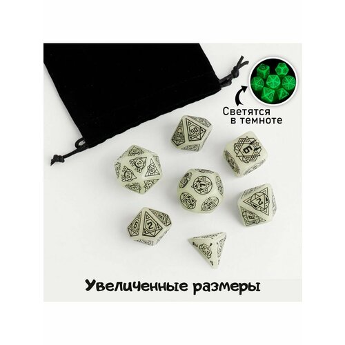 Набор кубиков DnD ДнД, светящиеся руны XL, 7 шт с мешочком