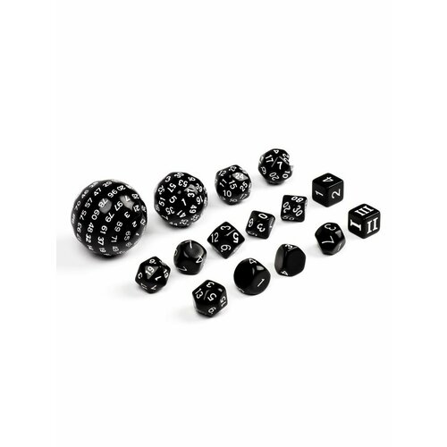 Большой набор кубиков для DnD, чёрные, 15 шт, от 4 до 100