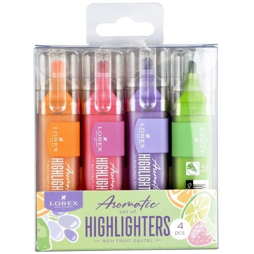Набор текстмаркеров LOREX RICH FRUIT, ароматизированные, 1-3,5 мм, скошенные, 4 цвета