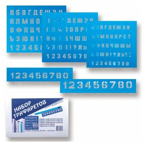 Набор трафаретов букв и цифр 5 шт. (размер букв:10,15,20мм, размер цифр: 15, 25мм), 28159, ш/к740072