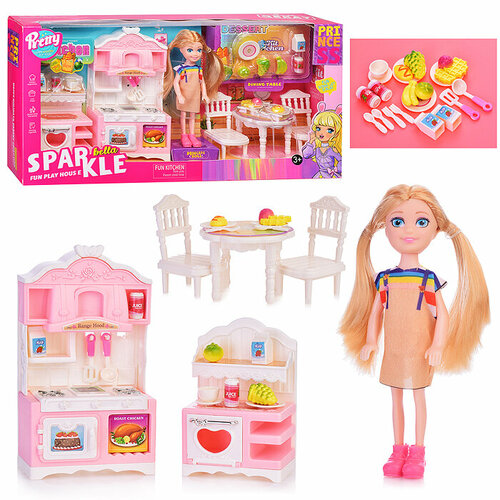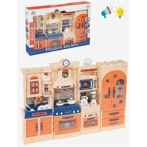 Кухонная мебель для куклы Modern классика со светом и музыкой ак высота 37 см оранжево-синяя