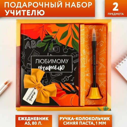 Подарочный набор «Любимому Учителю»: ежедневник и ручка-колокольчик (шариковая, синяя паста, 1 мм)