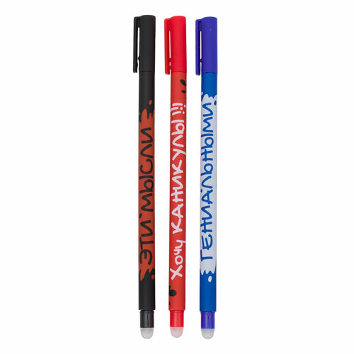 Ручка "пишет-стирает" гелевая 0,7мм игла (антискользящий цветной корпус) Школа-это не моё синяя (34963) (48 шт.)