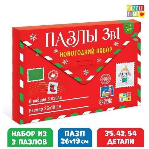 Набор пазлов в рамке «Новогодние радости», 35, 42, 54 детали