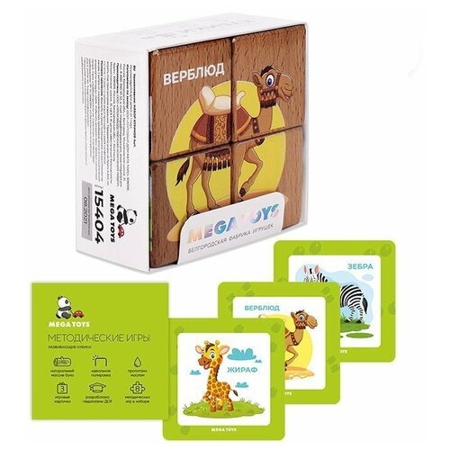 Набор деревянных кубиков обучающий "Животные жарких стран" 15404