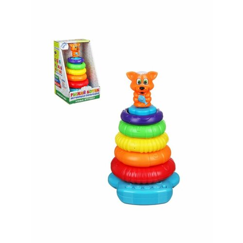 Игроленд Пирамидка обучающая в виде "Рыжего котика", звук, 2хАА, РР, 16х23,5х15см