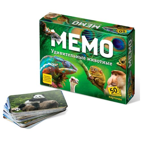 Нескучные игры Настольная игра "Мемо. Удивительные животные", 50 карточек + познавательная брошюра