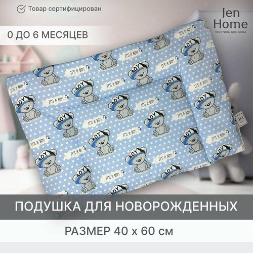 Подушка для малышей, гипоаллергенная 40х60 Мишки "It's a boy!" плоская 0+