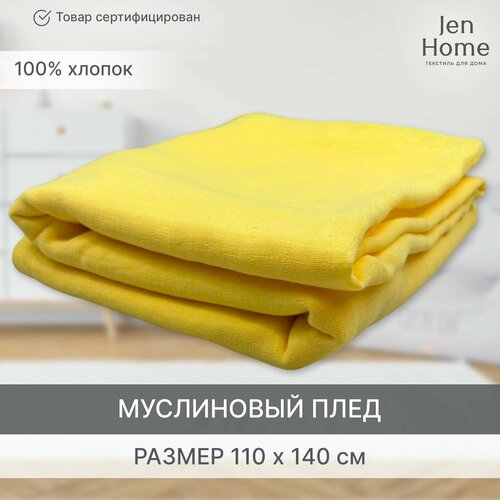 Муслиновый плед одеяло 4-х слойный детский хлопковый, для новорожденных 140x110 см, "Банановый"