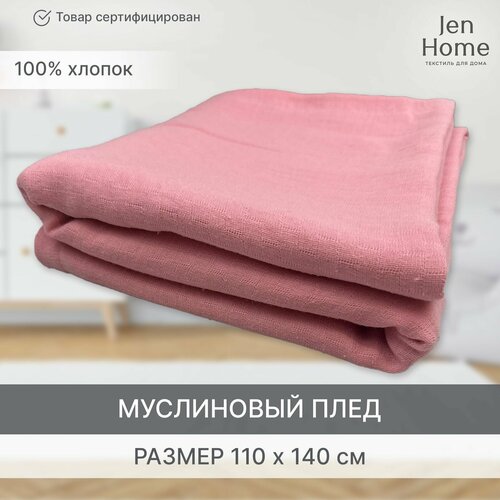 Муслиновый плед одеяло 4-х слойный детский хлопковый, для новорожденных 140x110 см, "Клубничный"