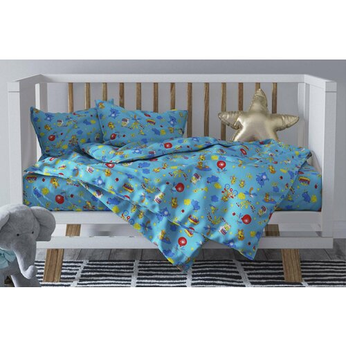 Детское постельное белье бязь зоопарк вид 4 голубой Ясли (в детскую кроватку)