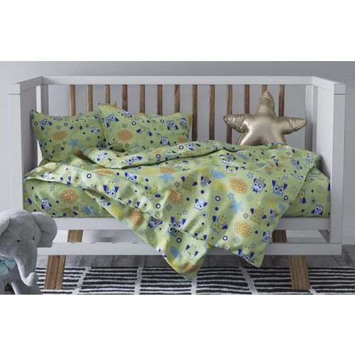 Детское постельное белье бязь совушки вид 3_3 фисташковый Ясли (в детскую кроватку)