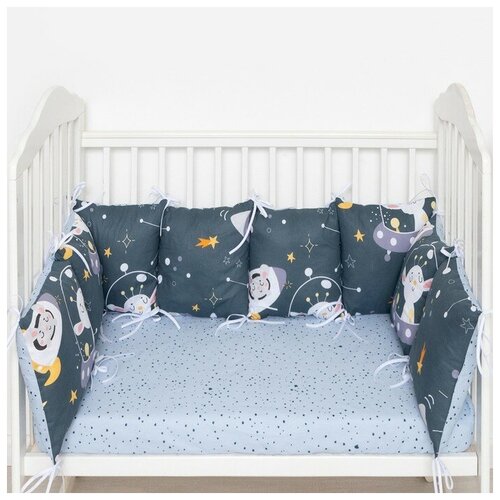 Бортики в кроватку Крошка Я "Ночные приключения" 35х35 см, 8 шт, 100% хлопок
