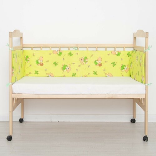 Бортик Мишки с мёдом бязь, лотекс, 4 части (2 ч: 30х60см, 2 ч: 30х120см), цвет салатовый