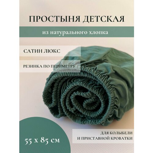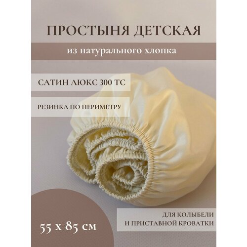 Натяжная простыня на резинке для детей 55х85, 100% хлопок сатин, Сатин люкс
