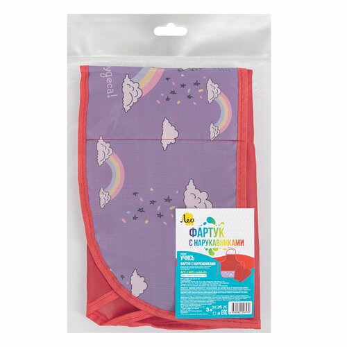 Фартук с нарукавниками для детского творчества "Лео" "Учись" LLAO-01,100% полиэстер, Единорог_красный