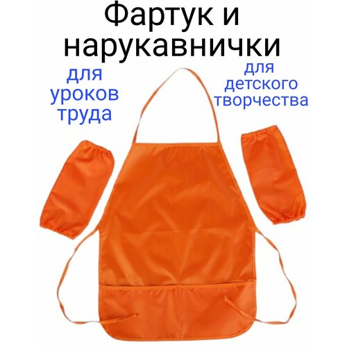 Фартук и нарукавники для детского творчества с карманами. Плотная ткань. Россия.