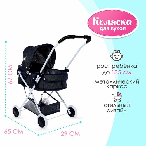 Коляска универсальная для кукол, с сумкой, с корзиной, металлический каркас
