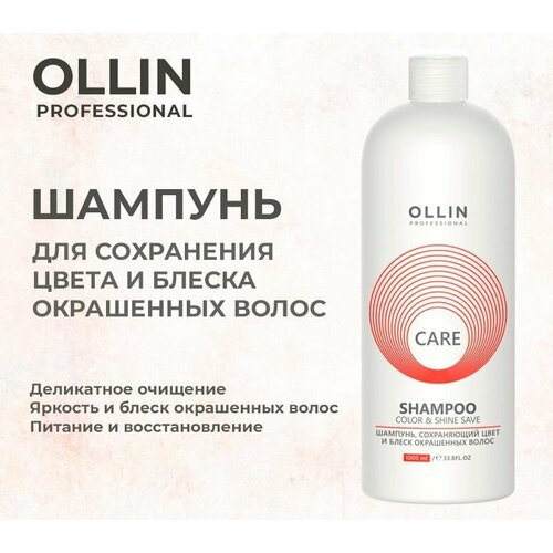 Ollin Care Шампунь, сохраняющий цвет и блеск окрашенных волос Color&Shine Save Shampoo 1000мл