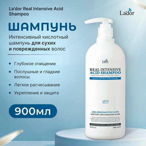 Шампунь для волос / для сильно поврежденных волос Lador REAL INTENSIVE ACID 900 ml, Корея