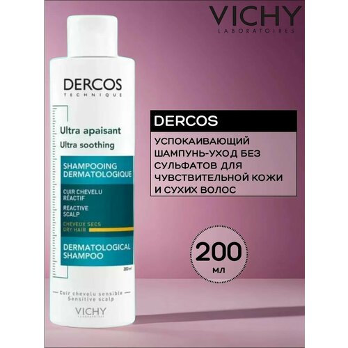Шампунь-уход успокаивающий Vichy Dercos без сульфатов для чувствительной кожи головы и сухих волос. 200 мл
