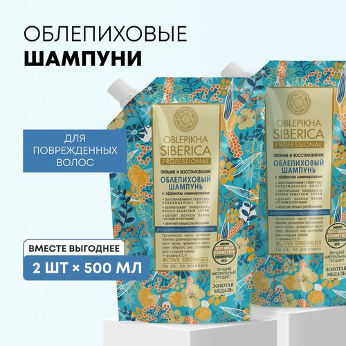 Шампунь облепиховый Natura Siberica для ослабленных поврежденных волос набор 2 штуки х 500 мл