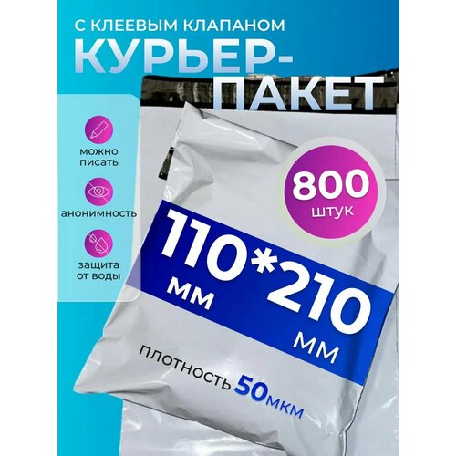 Белый курьер-пакет Стандарт 50мкм 110х210 мм -400 шт