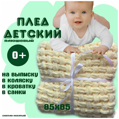 Детский вязанный плед в коляску / Покрывало для новорожденных на выписку / Плюшевый плед из пряжи Ализе Пуффи