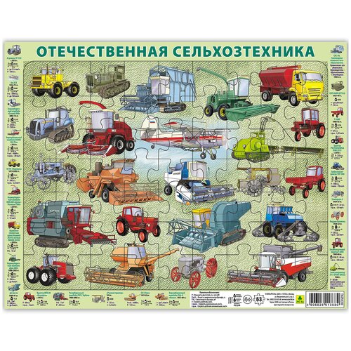 Отечественная сельхоз. техника. Детский пазл на подложке(36х28 см, 63 эл.)