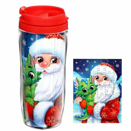 Пазл в термостакане «Дракончик и Дедушка Мороз», 54 элемента, 350 мл