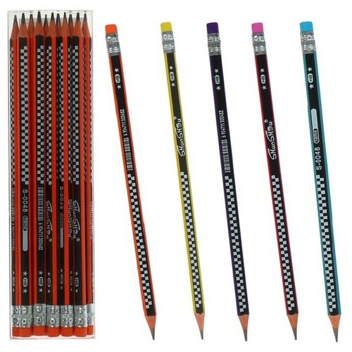 Карандаш чернографитный твёрдость НВ "Звезды" с ластиком, корпус треугольный, заточенный, микс, в тубусе